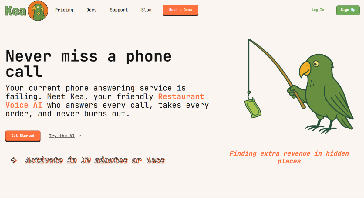 Kea AI is a restaurant voice AI platform designed to manage inbound phone calls and phone ordering at scale using a friendly restaurant voice AI experience.